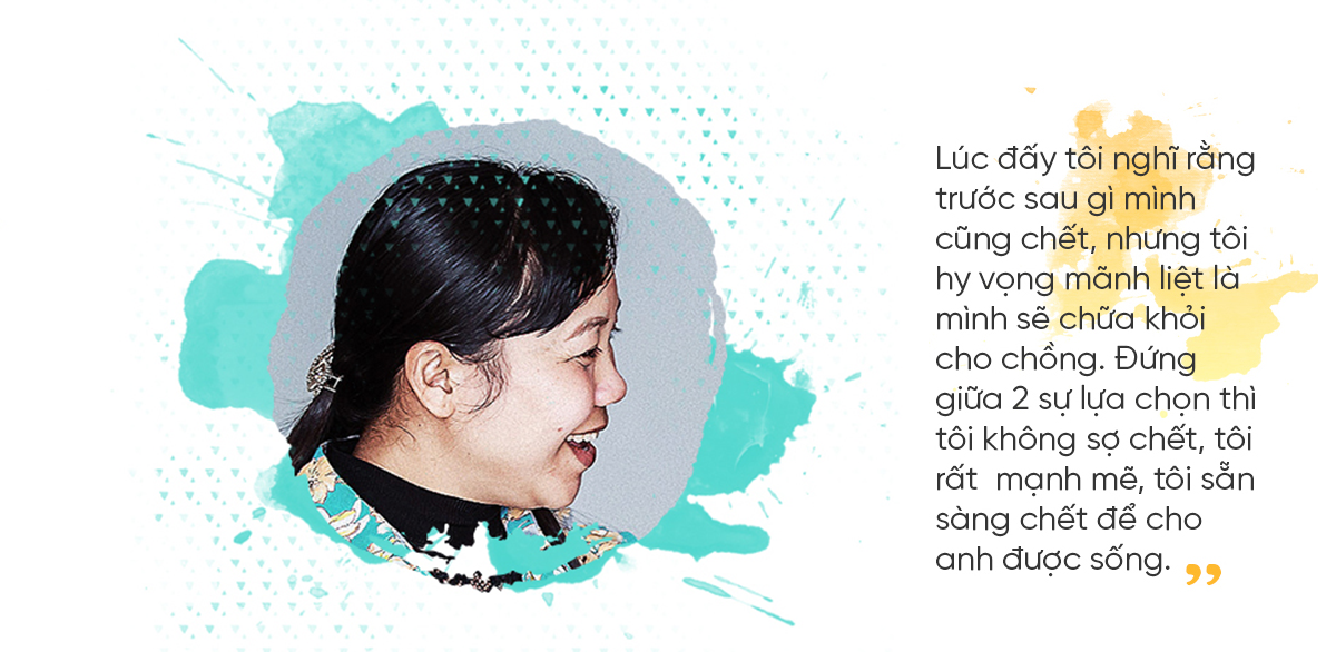 Chị Hiển trả lời: "Lúc đấy tôi nghĩ rằng trước sau gì mình cũng chết, nhưng tôi hy vọng mãnh liệt là mình sẽ chữa khỏi cho chồng. Đứng giữa 2 sự lựa chọn thì tôi không sợ chết, tôi rất mạnh mẽ, tôi sẵn sàng chết để cho anh được sống."