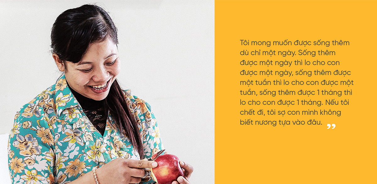Nhưng trên hết, trong suốt quá trình chữa bệnh, chị Hiển giữ được lòng ham sống, khát vọng sống vì chị còn muốn lo lắng cho đứa con cuối cùng còn nhỏ dại. Chị nói: "Tôi mong muốn được sống thêm dù chỉ một ngày. Sống thêm được một ngày thì lo cho con được một ngày, sống thêm được một tuần thì lo cho con được một tuần, sống thêm được 1 tháng thì lo cho con được 1 tháng. Nếu tôi chết đi, tôi sợ con mình không biết nương tựa vào đâu".
