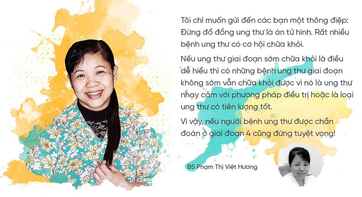 Chụp màn hình tin nhắn gửi lại cho tôi, BS Việt Hương như có một niềm vui muốn "khoe". Chị vui, mừng cho bệnh nhân. Chị bảo: "Ca bệnh này gian truân mà cũng kỳ diệu lắm! Bệnh nhân đã vượt qua năm thứ 5 sau khi điều trị, vậy là hai căn bệnh ung thư đều đã được đẩy lùi hẳn rồi!"